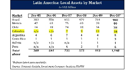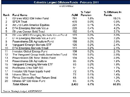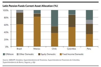 • It is thus entirely possible for the Colombian pension funds to grow to $150 billion in the next few years (Chile is there now), with allocations to crossborder vehicles rising quickly.