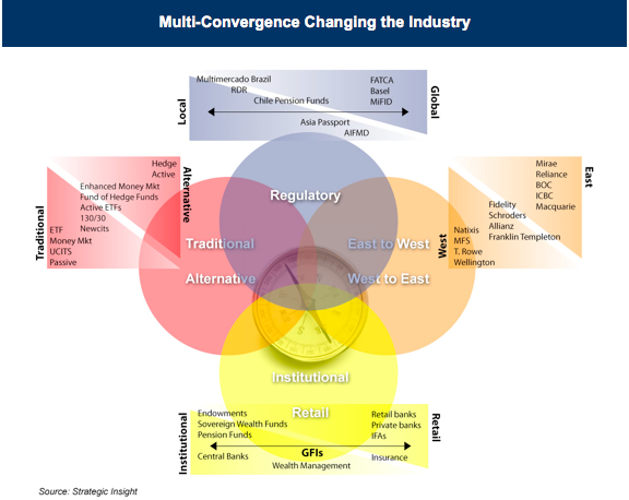 As we have seen in recent months, the M&A scene is heating up worldwide. Whether it is Sao Paulo-based Safra buying Swiss Sarasin to build Europe, Middle East, and Asia HNW distribution, Aberdeen buying Nationwide in the US, Credit Suisse buying Hedging Griffo, or Principal buying Claritas, the importance to build a global network to leverage investment and distribution capabilities in an age of blockbusters and multi-convergence will be paramount.