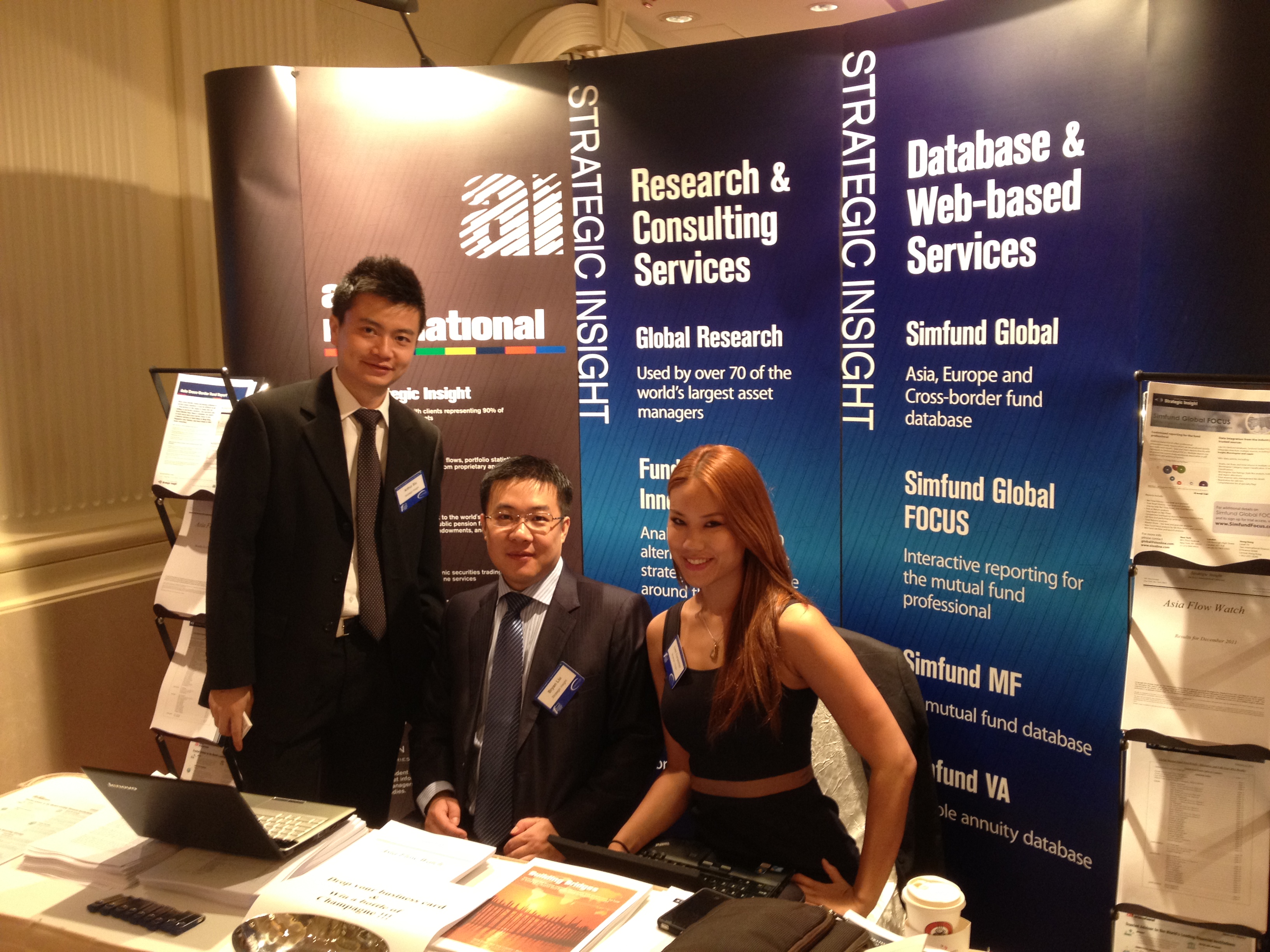 Asset International/Strategic Insight had a booth at the Asia Fund Forum 2012 with our local team for the region, as well as an overview of our various other subsidiaries, among them aiCIO, Global Custodian, and our newest addition, “Philanthropy Management“.