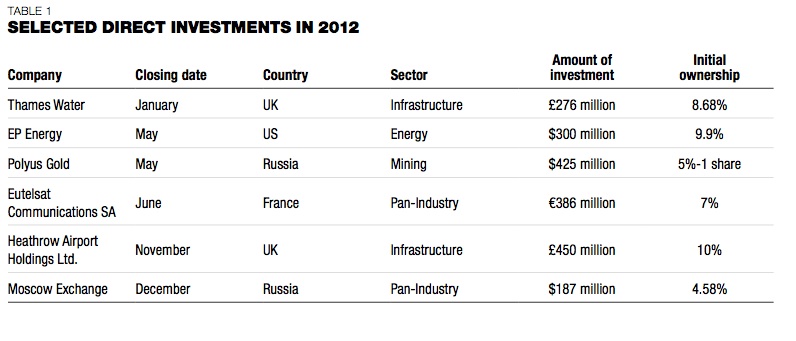 – CIC’s total assets in 2012 increased from $480 billion to $575 billion, with some $356 billion in long-term equity investments.