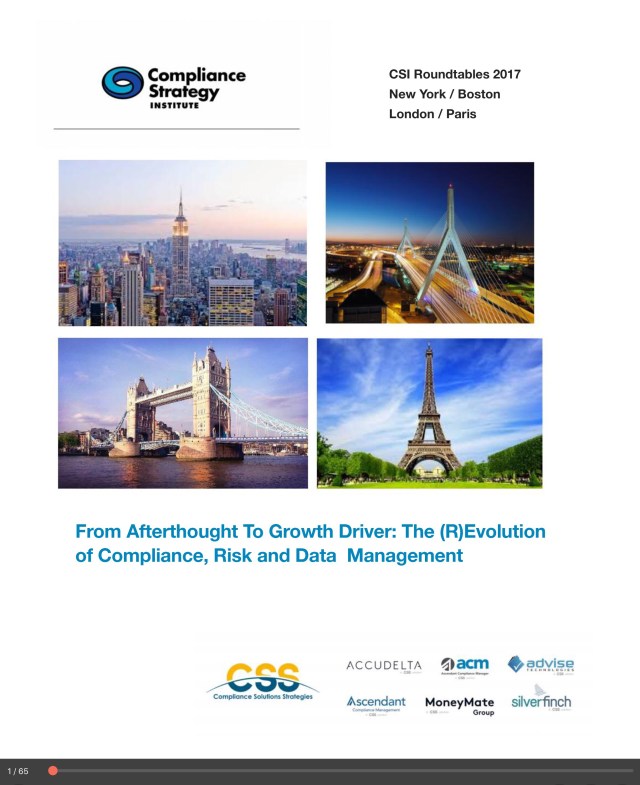 The Compliance Strategy Institute held numerous workshops with compliance and risk executives globally and is developing global thematic task forces to discuss approaches for asset managers, individually and industry-wide.